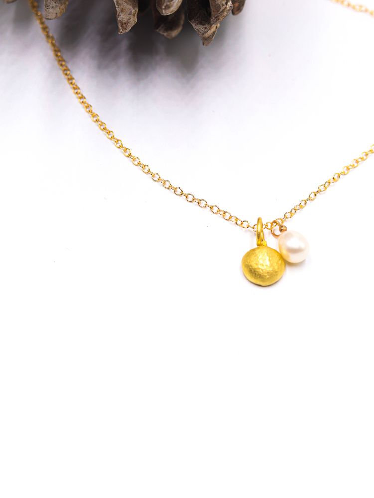 חומרים- תליון שרשרת: ננוגולד, שרשרת: גולדפילד וחרוז פנינה טבעי.