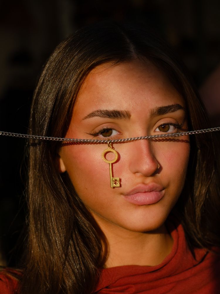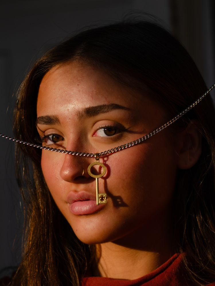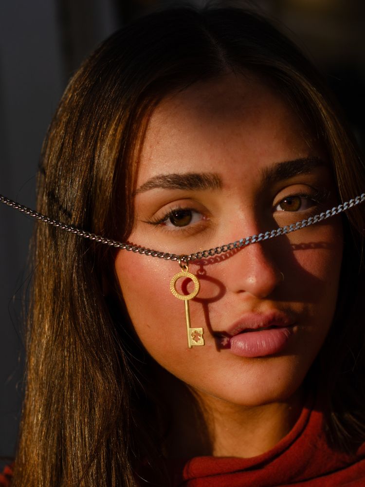 חומרים- תליון שרשרת: מוזהב 3 מיקרון ו18K, שרשרת: נירוסטה, סוגר: כסף.